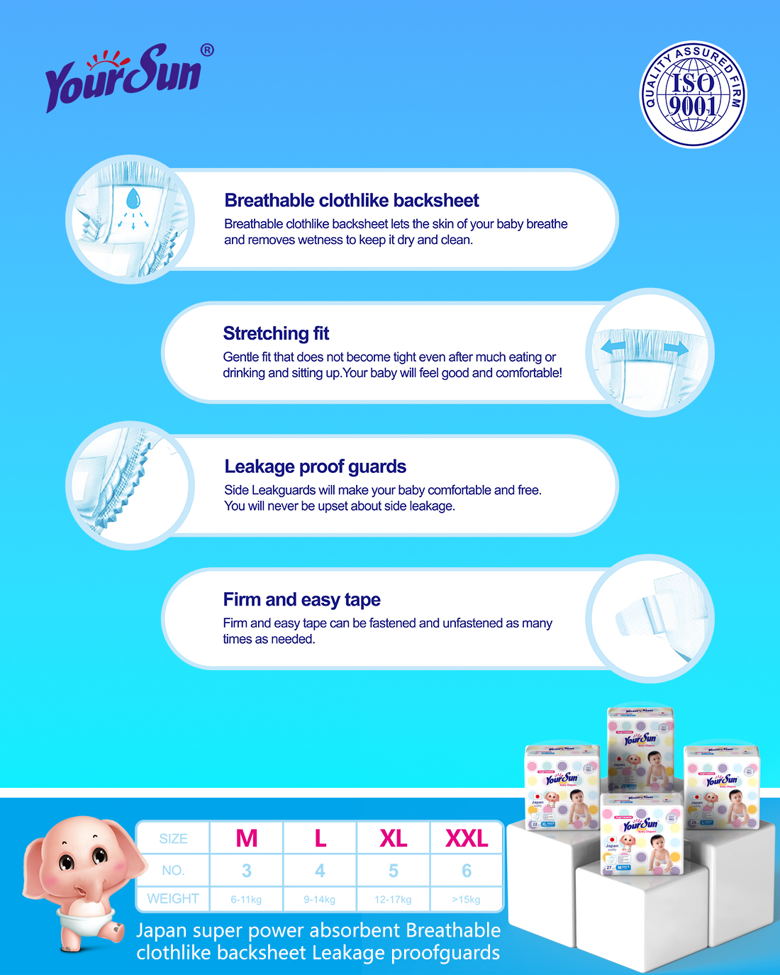 Yoursun Premium Quality Baby Diaper With Kazakh Packaging